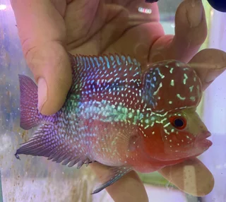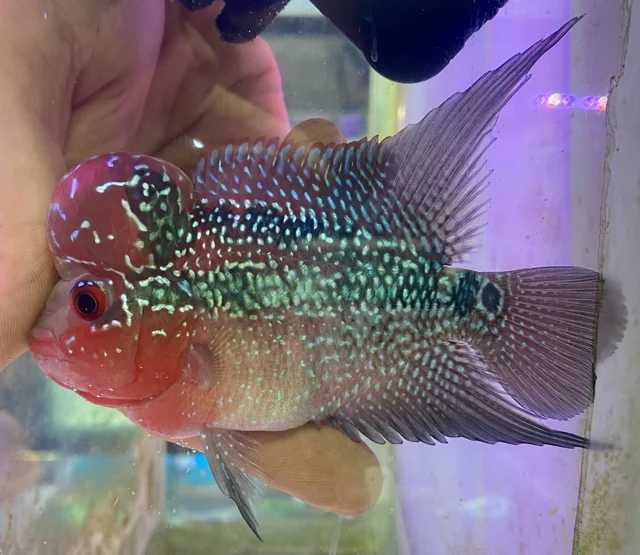 این فلاور هورن زیبا با رنگ درخشان، دابل مارکینگ منظم، پرل‌های پررنگ و هد برجسته، نمونه‌ای کم‌نظیر از نژادهای باکیفیت است. رفتار پرانرژی و هوش بالا، این ماهی را به یکی از محبوب‌ترین گونه‌ها میان علاقه‌مندان حرفه‌ای آکواریوم تبدیل کرده است.