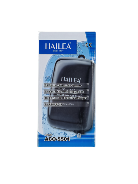 پمپ هوای آکواریوم Hailea ACO-5501 یک پمپ تکخروجی کممصرف و بیصداست که با توان ۲ وات و خروجی ۱.۳ لیتر در دقیقه، برای آکواریومهای کوچک تا ۳۵ لیتر طراحی شده و اکسیژنرسانی یکنواخت و مطمئن را فراهم میکند.