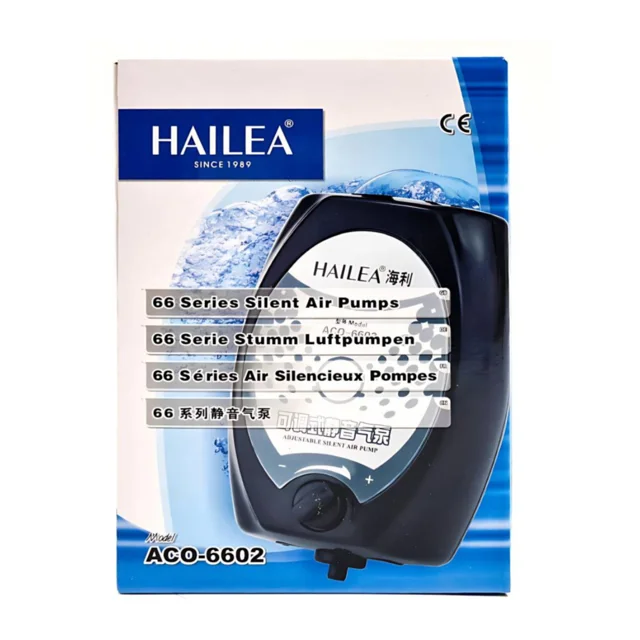 پمپ هوای آکواریوم Hailea ACO-6602 یک پمپ دوخروجی کممصرف و بیصداست که با توان ۳ وات و خروجی ۲×۲ لیتر در دقیقه، اکسیژنرسانی یکنواخت و قدرتمند را برای آکواریومهای متوسط تا ۶۰ لیتر فراهم میکند.